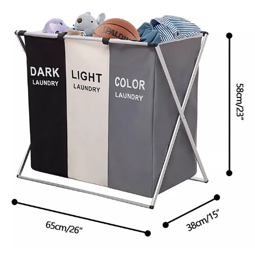 🔹 Clasificación inteligente en segundos Cuenta con 3 compartimentos amplios que te permiten separar fácilmente la ropa clara, oscura y de color. Ahorras tiempo al lavar y evitas accidentes de teñido.